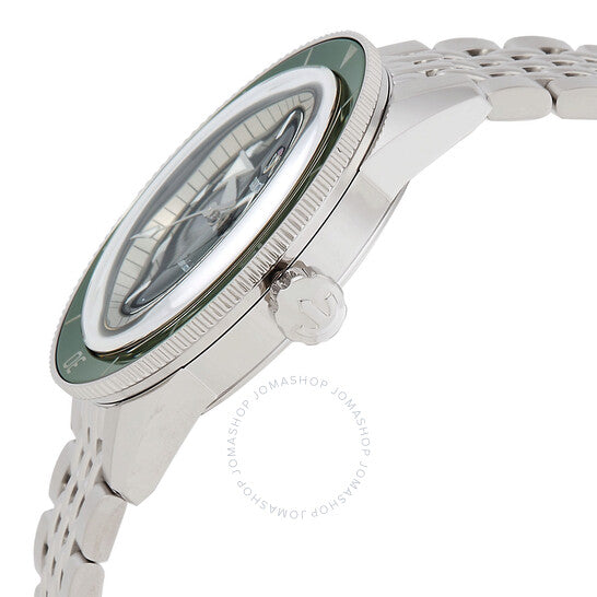 علبة من الفولاذ المقاوم للصدأ مع سوار من الفولاذ المقاوم للصدأ. إطار دوار أحادي الاتجاه من الفولاذ المقاوم للصدأ مع حلقة سيراميك خضراء. ميناء أخضر مع عقارب ومؤشرات ساعات فضية مضيئة. مؤشرات دقائق حول الحافة الخارجية. نوع الميناء: تناظري. عقارب ومؤشرات مضيئة. عرض التاريخ عند موضع الساعة 3. حركة أوتوماتيكية باحتياطي طاقة يصل إلى 80 ساعة. زجاج من الياقوت المقاوم للخدش. تاج لولبي. غطاء خلفي صلب. شكل دائري. حجم العلبة: 42 مم. سمكها: 12.1 مم. عرض السوار: 20 مم. مشبك قابل للطي بزر ضغط. مقاومة للماء حتى عمق 200 متر / 660 قدمًا. الوظائف: التاريخ، الساعة، الدقائق، الثواني. تصميم كاجوال. علامة الساعة: صناعة سويسرية. ساعة رادو كابتن كوك أوتوماتيكية للرجال بمينا أخضر، R32505313.
