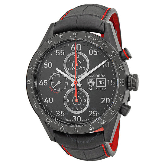 علبة من التيتانيوم الأسود مع سوار أسود من جلد التمساح. إطار ثابت من التيتانيوم الأسود مع حلقة سيراميك سوداء تُظهر علامات التاكيمتر. ميناء أسود بعقارب وعلامات ساعات فضية مضيئة. علامات دقائق حول الحافة الخارجية. نوع الميناء: تناظري. عقارب وعلامات مضيئة. عرض التاريخ عند موضع الساعة 3. كرونوغراف - ثلاثة أقراص فرعية تعرض: 60 ثانية، 30 دقيقة، و12 ساعة. حركة أوتوماتيكية من تاغ هوير، كاليبر 1887، مبنية على حركة سيكو 6S37، تحتوي على 39 جوهرة، تنبض بمعدل 28800 ذبذبة في الساعة، ولديها احتياطي طاقة لمدة 50 ساعة تقريبًا. كريستال ياقوت صناعي مقاوم للخدش. تاج لولبي. غطاء خلفي شفاف. شكل دائري. حجم العلبة: 43 مم. سمك العلبة: 16.5 مم. عرض السوار: 22.9 مم، طول السوار: 9 بوصات. مشبك قابل للطي. مقاومة للماء حتى عمق ١٠٠ متر / ٣٣٠ قدمًا. الوظائف: كرونوغراف، عجلة عمودية، التاريخ، الساعات، الدقائق، الثواني الصغيرة. تصميم كاجوال. علامة الساعة: صناعة سويسرية. ساعة تاغ هوير كاريرا ١٨٨٧ كرونوغراف أوتوماتيكية للرجال CAR2A80FC6237.