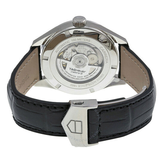علبة من الفولاذ المقاوم للصدأ مع سوار جلدي أسود. إطار ثابت من الفولاذ المقاوم للصدأ. ميناء أسود بعقارب وعلامات ساعات فضية اللون. علامات دقائق حول الحافة الخارجية. نوع الميناء: تناظري. عقارب وعلامات مضيئة. نافذة للتاريخ أسفل موضع الساعة ١٢. ميناء فرعي لعرض ٢٤ ساعة (بتوقيت غرينتش) عند موضع الساعة ٦. حركة أوتوماتيكية مع احتياطي طاقة ٤٢ ساعة. زجاج ياقوت مقاوم للخدش. ظهر هيكلي. قطر العلبة: ٤١ مم. شكل دائري. مشبك قابل للطي. مقاومة للماء حتى عمق ٣٠ مترًا / ١٠٠ قدم. الوظائف: التاريخ، الساعة، الدقيقة، الثانية، توقيت غرينتش. تصميم ساعة فاخرة. ساعة تاغ هوير كاريرا أوتوماتيكية للرجال بمينا أسود وجلد أسود، WAR5010.FC6266.