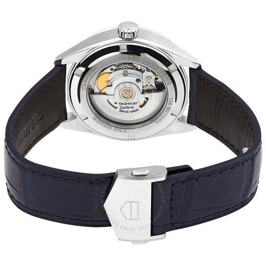 علبة من الفولاذ المقاوم للصدأ فضية اللون مع سوار من الجلد الأزرق (جلد التمساح). الإطار: فولاذ مقاوم للصدأ فضي اللون ثابت. ميناء أزرق مع عقارب ومؤشرات ساعات فضية مضيئة. مؤشرات دقائق بأرقام عربية (بفاصل ١٠ دقائق). مؤشرات دقائق حول الحافة الخارجية. نوع الميناء: تناظري. عقارب ومؤشرات مضيئة. عرض التاريخ عند موضع الساعة السادسة. حركة أوتوماتيكية من تاغ هوير كاليبر ٥ مع احتياطي طاقة ٣٨ ساعة. زجاج ياقوت مقاوم للخدش. غطاء خلفي شفاف. هيكل دائري الشكل، مقاس الهيكل: ٣٩ مم، سمكه: ١١.٥٠ مم. مشبك قابل للطي. مقاومة للماء حتى عمق ١٠٠ متر / ٣٣٠ قدمًا. الوظائف: التاريخ، الساعة، الدقيقة، الثانية. سلسلة كاريرا. تصميم ساعة فاخرة. علامة الساعة: صناعة سويسرية. ساعة تاغ هوير كاريرا أوتوماتيكية للرجال بمينا أزرق WBN2112.FC6504.