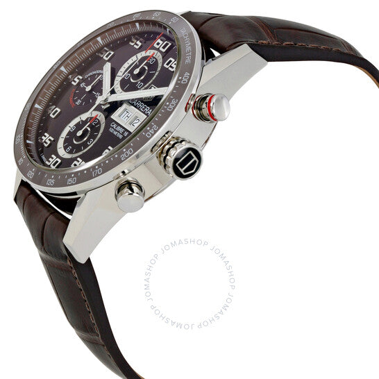علبة من الفولاذ المقاوم للصدأ مع سوار بني من جلد التمساح. إطار ثابت من الفولاذ المقاوم للصدأ مع حلقة علوية بنية تُظهر علامات التاكيمتر. ميناء بني مع عقارب فضية مضيئة وعلامات دقائق عربية (بفاصل 5 دقائق). علامات دقائق حول الحافة الخارجية. نوع الميناء: تناظري. عقارب مضيئة. عرض يوم الأسبوع والتاريخ عند موضع الساعة 3. كرونوغراف - ثلاثة أقراص فرعية تعرض: 60 ثانية، 30 دقيقة، و1/10 من الثانية. حركة أوتوماتيكية من تاغ هوير كاليبر 16 مع احتياطي طاقة لمدة 42 ساعة. زجاج ياقوت مقاوم للخدش. تاج لولبي. غطاء خلفي شفاف. حجم العلبة: 43 مم. سمكها: 16.85 مم. شكلها دائري. عرض السوار: 22 مم. مشبك قابل للطي بزر ضغط. مقاومة للماء حتى عمق 100 متر / 330 قدمًا. الوظائف: كرونوغراف، مقياس سرعة الدوران، التاريخ، الساعات، الدقائق، الثواني. تصميم فاخر. علامة الساعة: صناعة سويسرية. ساعة تاغ هوير كاريرا أوتوماتيكية كرونوغراف للرجال CV2A1S.FC6236.