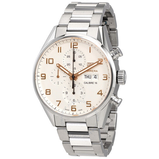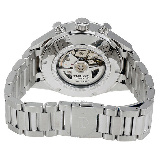 علبة وسوار من الفولاذ المقاوم للصدأ بلون فضي. إطار ثابت بلون فضي. ميناء فضي مع عقارب بلون ذهبي وردي وعلامات ساعات بأرقام عربية. علامات دقائق حول الحافة الخارجية. نوع الميناء: تناظري. عرض يوم الأسبوع والتاريخ عند موضع الساعة 3. كرونوغراف - ثلاثة أقراص فرعية تعرض: 60 ثانية، 30 دقيقة، و12 ساعة. حركة أوتوماتيكية من تاغ هوير كاليبر 16 مع احتياطي طاقة لمدة 42 ساعة. زجاج من الياقوت المقاوم للخدش. تاج قابل للسحب/الدفع. غطاء خلفي صلب. حجم العلبة: 43 مم. شكل دائري. مشبك قابل للطي بزر ضغط. مقاومة للماء حتى عمق 100 متر / 330 قدم. الوظائف: كرونوغراف، تاريخ، يوم الأسبوع، ساعة، دقيقة، ثانية. تصميم ساعة فاخرة. علامة الساعة: صناعة سويسرية. ساعة تاغ هوير كاريرا أوتوماتيكية كرونوغراف للرجال CV2A1AC.BA0738.