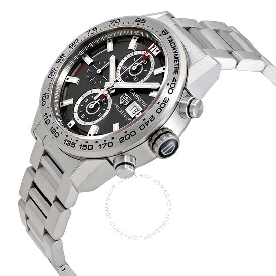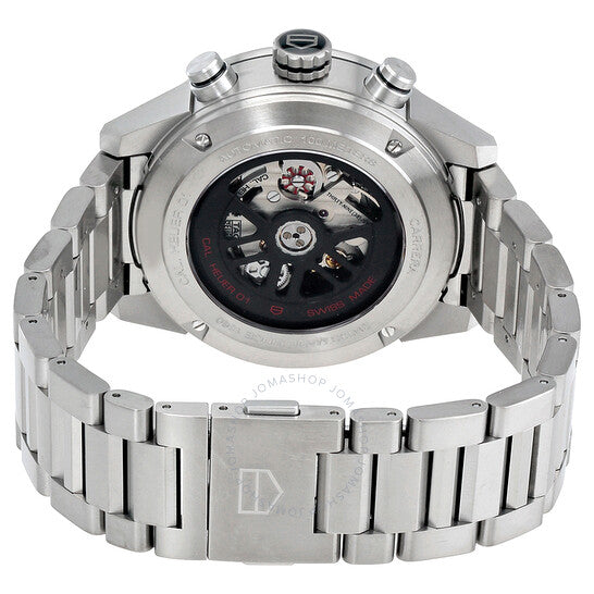 علبة تيتانيوم رمادية اللون مع سوار تيتانيوم فضي اللون. إطار تيتانيوم رمادي بمقياس سرعة دوران ثابت. ميناء رمادي اللون مع عقارب وعلامات ساعات فضية مضيئة. علامات دقائق حول الحافة الخارجية. نوع الميناء: تناظري. عقارب وعلامات مضيئة. عرض التاريخ عند موضع الساعة 3. كرونوغراف - ثلاثة أقراص فرعية تعرض: 60 ثانية، 30 دقيقة، و12 ساعة. حركة أوتوماتيكية من طراز TAG Heuer Calibre 01، مبنية على طراز TAG Heuer Calibre 1887، تحتوي على 39 جوهرة، تنبض بمعدل 28800 ذبذبة في الساعة، ولديها احتياطي طاقة لمدة 50 ساعة تقريبًا. كريستال ياقوت مقاوم للخدش. تاج قابل للسحب/الدفع. غطاء خلفي شفاف. شكل دائري، حجم العلبة: 43 مم. قابلة للطي بمشبك بزر ضغط. مقاومة للماء حتى عمق 100 متر / 330 قدمًا. الوظائف: كرونوغراف، مقياس سرعة دوران، عجلة عمودية، التاريخ، الساعات، الدقائق، الثواني الصغيرة. سلسلة كاريرا. ساعة فاخرة. علامة الساعة: صناعة سويسرية. ساعة تاغ هوير كاريرا كرونوغراف أوتوماتيكية للرجال، مينا رمادي، CAR208Z.BF0719.