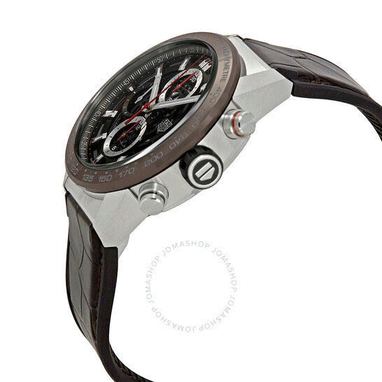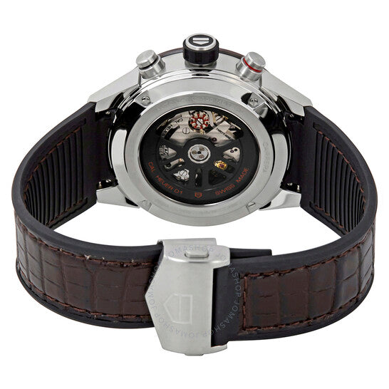 علبة من الفولاذ المقاوم للصدأ مع سوار بني من جلد التمساح (مغطى بالمطاط). إطار ثابت من السيراميك البني. ميناء بني هيكلي مع عقارب ومؤشرات ساعات فضية مضيئة. مؤشرات دقائق حول الحافة الخارجية. نوع الميناء: تناظري. عقارب ومؤشرات مضيئة. عرض التاريخ بين موضعي الساعة 3 و4. كرونوغراف - ثلاثة موانئ فرعية تعرض: 60 ثانية، 30 دقيقة، و12 ساعة. حركة أوتوماتيكية من تاغ هوير كاليبر 01 مع احتياطي طاقة يصل إلى 50 ساعة. زجاج ياقوت مقاوم للخدش. تاج قابل للسحب/الدفع. غطاء خلفي شفاف. شكل دائري. حجم العلبة: 43 مم. سمك العلبة: 16.5 مم. عرض السوار: 22 مم. مشبك قابل للطي. مقاومة للماء حتى عمق 100 متر / 330 قدمًا. الوظائف: كرونوغراف، مقياس سرعة الدوران، التاريخ، الساعة، الدقيقة، الثانية. طراز ساعة فاخرة. ملصق الساعة: صناعة سويسرية. ساعة تاغ هوير كاريرا كرونوغراف أوتوماتيكية للرجال CAR201U.FC6405.