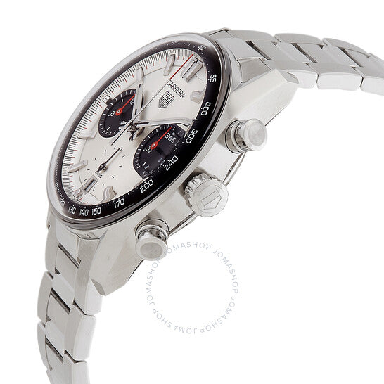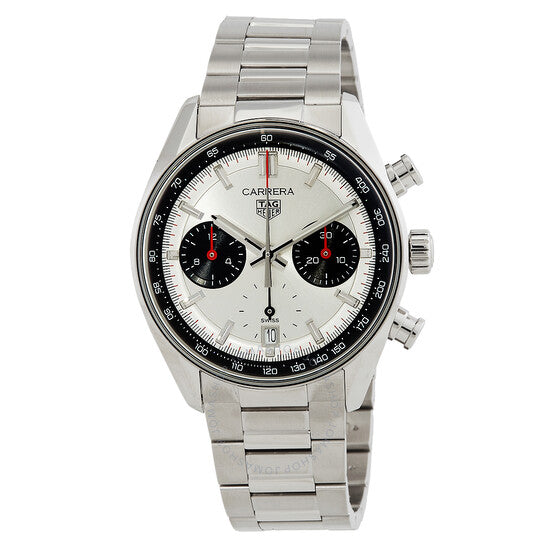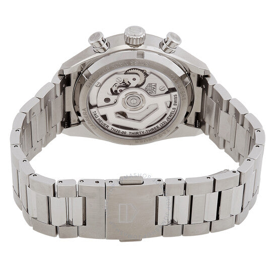 علبة وسوار من الفولاذ المقاوم للصدأ فضي اللون. إطار ثابت من الفولاذ المقاوم للصدأ فضي اللون. ميناء فضي اللون مع عقارب وعلامات ساعات فضية اللون. علامات دقائق حول الحافة الخارجية. نوع الميناء: تناظري. عقارب وعلامات مضيئة. عرض التاريخ عند موضع الساعة السادسة. كرونوغراف - ثلاثة أقراص فرعية تعرض: ٦٠ ثانية، ٣٠ دقيقة، وعُشر الثانية. حركة أوتوماتيكية من طراز تاغ هوير كاليبر TH20-00 مع احتياطي طاقة يصل إلى ٨٠ ساعة. زجاج من الياقوت المقاوم للخدش. تاج قابل للسحب/الدفع. غطاء خلفي شفاف. شكل العلبة دائري، مقاسها ٣٩ مم. مشبك قابل للطي مع مفتاح أمان. مقاومة للماء حتى عمق ١٠٠ متر / ٣٣٠ قدمًا. الوظائف: كرونوغراف، تاريخ، ساعة، دقيقة، ثانية. سلسلة كاريرا. طراز ساعة رياضية. علامة الساعة: صناعة سويسرية. ساعة تاغ هوير كاريرا كرونوغراف أوتوماتيكية للرجال بمينا فضي CBS2216.BA0041.