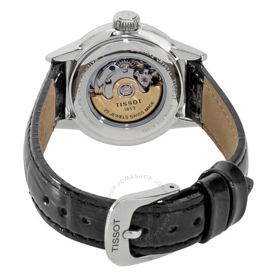 علبة من الفولاذ المقاوم للصدأ مع سوار جلدي أسود. إطار ثابت من الفولاذ المقاوم للصدأ. ميناء أبيض بعقارب سوداء وعلامات ساعات رومانية. علامات دقائق حول الحافة الخارجية. نوع الميناء: تناظري. عرض التاريخ عند موضع الساعة 3. حركة أوتوماتيكية ETA 2671 مع احتياطي طاقة لمدة 38 ساعة. زجاج ياقوت مقاوم للخدش. تاج قابل للسحب/الدفع. ظهر هيكلي. حجم العلبة: 29.5 مم. سمكها: 9.15 مم. شكلها دائري. عرض السوار: 14 مم. طول السوار: 6 بوصات. مشبك تانغ. مقاومة للماء حتى عمق 30 مترًا / 100 قدم. الوظائف: التاريخ، الساعة، الدقائق، الثواني. تصميم كاجوال. علامة الساعة: صناعة سويسرية. ساعة تيسوت كارسون أوتوماتيكية نسائية بمينا أبيض T085.207.16.013.00.