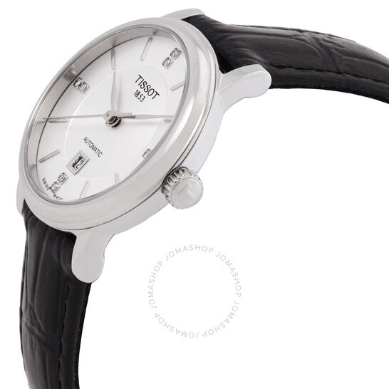 علبة من الفولاذ المقاوم للصدأ فضية اللون مع سوار جلدي أسود. إطار ثابت من الفولاذ المقاوم للصدأ فضي اللون. ميناء فضي اللون مع عقارب فضية اللون وعلامات ساعات. نوع الميناء: تناظري. عرض التاريخ عند موضع الساعة السادسة. حركة أوتوماتيكية. زجاج ياقوتي مقاوم للخدش. هيكل دائري، مقاسه: 30 مم، سُمكه: 9 مم. عرض السوار: 15 مم، طوله: 7.5 بوصة. مقاومة للماء حتى عمق 50 مترًا / 165 قدمًا. الوظائف: التاريخ، الساعة، الدقائق، الثواني. سلسلة كارسون. طراز الساعة الرياضية. علامة الساعة: صناعة سويسرية. ساعة تيسوت كارسون نسائية بمينا فضي اللون T1222071603601.
