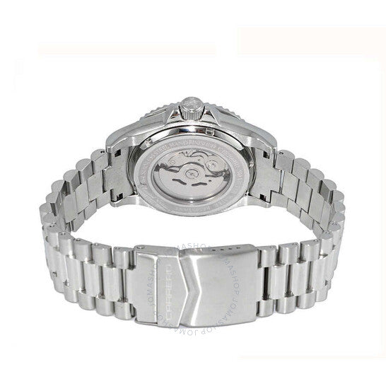 ساعة تورينو كاريرو أفاتار أوتوماتيكية للرجال NH35 - 21 جوهرة، ميناء أزرق مائي من عرق اللؤلؤ، لون فضي. هيكل وسوار من الفولاذ المقاوم للصدأ فضي اللون. إطار دوار أحادي الاتجاه من الفولاذ المقاوم للصدأ فضي اللون. ميناء أزرق مع عقارب وعلامات ساعات فضية اللون. علامات دقائق حول الحافة الخارجية. نوع الميناء: تناظري. عقارب وعلامات مضيئة. عرض التاريخ عند موضع الساعة 3. حركة أوتوماتيكية TMI Caliber NH35، تحتوي على 24 جوهرة، تنبض بسرعة 21600 ذبذبة في الساعة، ولديها احتياطي طاقة لمدة 41 ساعة تقريبًا. زجاج معدني مقاوم للخدش. تاج لولبي. غطاء خلفي شفاف. شكل الهيكل مستدير، حجم الهيكل: 44 مم، سمك الهيكل: 15 مم. عرض السوار: 21.5 مم، طول السوار: 8.25 بوصة. مشبك قابل للطي بزر ضغط للفتح. مقاومة للماء حتى عمق 100 متر / 330 قدمًا. الوظائف: التاريخ، الساعة، الدقائق، الثواني. سلسلة كاتانيا. ساعة كاجوال. ماركة الساعة: Japan Movt. ساعة تورينو كاريرو كاتانيا أوتوماتيكية للرجال بمينا أزرق C1S266BUJ.