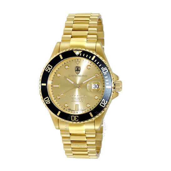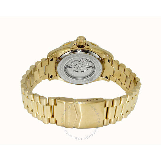 ساعة تورينو كاريرو كاتانيا-PD أوتوماتيكية NH35 للرجال - 21 جوهرة، ميناء ذهبي بخاصية عرض التاريخ، إطار أسود، لون ذهبي. هيكل وسوار من الفولاذ المقاوم للصدأ بلون ذهبي أصفر. إطار دوار أحادي الاتجاه من الألومنيوم الأسود. ميناء بلون الشمبانيا مع عقارب وعلامات ساعات ذهبية صفراء. علامات دقائق حول الحافة الخارجية. نوع الميناء: تناظري. عقارب وعلامات مضيئة. عرض التاريخ عند موضع الساعة 3. حركة أوتوماتيكية من عيار TMI NH35، تحتوي على 24 جوهرة، تنبض بمعدل 21600 ذبذبة في الساعة، ولديها احتياطي طاقة لمدة 41 ساعة تقريبًا. زجاج معدني مقاوم للخدش. تاج لولبي. غطاء خلفي شفاف. شكل الهيكل مستدير، حجم الهيكل: 44 مم، سمك الهيكل: 15 مم. عرض السوار: 21 مم، طول السوار: 8.25 بوصة. مشبك قابل للطي بزر ضغط للفتح. مقاومة للماء حتى عمق 200 متر / 660 قدمًا. الوظائف: التاريخ، الساعة، الدقائق، الثواني. سلسلة كاتانيا. ساعة كاجوال أنيقة. ماركة الساعة: Japan Movt. ساعة تورينو كاريرو كاتانيا أوتوماتيكية للرجال، بمينا بلون الشمبانيا، C1G888GOBKJ.