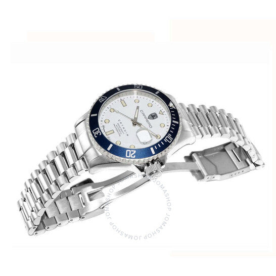 ساعة تورينو كاريرو كاتانيا-PD أوتوماتيكية NH35 للرجال - 21 جوهرة، ميناء فضي مع تاريخ، إطار أزرق، لون فضي. هيكل وسوار من الفولاذ المقاوم للصدأ فضي اللون. إطار دوار أحادي الاتجاه من الألومنيوم الأزرق. ميناء فضي اللون مع عقارب وعلامات ساعات فضية اللون. علامات دقائق حول الحافة الخارجية. نوع الميناء: تناظري. عقارب وعلامات مضيئة. عرض التاريخ عند موضع الساعة 3. حركة أوتوماتيكية TMI Caliber NH35، تحتوي على 24 جوهرة، تنبض بمعدل 21600 ذبذبة في الساعة، ولديها احتياطي طاقة لمدة 41 ساعة تقريبًا. زجاج معدني مقاوم للخدش. تاج لولبي. غطاء خلفي شفاف. شكل الهيكل مستدير، حجم الهيكل: 44 مم، سمك الهيكل: 15 مم. عرض السوار: 21 مم، طول السوار: 8.25 بوصة. مشبك قابل للطي بزر ضغط للفتح. مقاومة للماء حتى عمق 200 متر / 660 قدمًا. الوظائف: التاريخ، الساعة، الدقائق، الثواني. سلسلة كاتانيا. ساعة كاجوال. ماركة الساعة: Japan Movt. ساعة تورينو كاريرو كاتانيا أوتوماتيكية للرجال، بمينا فضي، C1S888SVJ.