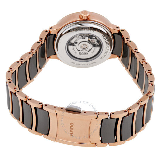 علبة من الفولاذ المقاوم للصدأ فضية اللون مع سوار من الفولاذ المقاوم للصدأ ثنائي اللون (فضي وذهبي وردي). إطار ثابت من الفولاذ المقاوم للصدأ ذهبي وردي. ميناء فضي اللون مع عقارب ذهبية وردية وعلامات ساعات من الألماس. نوع الميناء: تناظري. عرض التاريخ عند موضع الساعة 6. حركة أوتوماتيكية باحتياطي طاقة لمدة 48 ساعة. زجاج ياقوت مقاوم للخدش. شكل العلبة دائري، مقاسها 30 مم. مشبك قابل للطي مع مفتاح أمان. مقاومة للماء حتى عمق 50 مترًا / 165 قدمًا. الوظائف: التاريخ، الساعة، الدقيقة، الثانية. معلومات إضافية: العلبة الأصلية، بطاقة الضمان الدولية، دليل الاستخدام (ملحقات كاملة). سلسلة سنتركس. تصميم ساعة فاخرة. ملصق الساعة: صناعة سويسرية. ساعة رادو سنتركس أوتوماتيكية نسائية بمينا فضي مرصعة بالألماس، طراز R30019742.