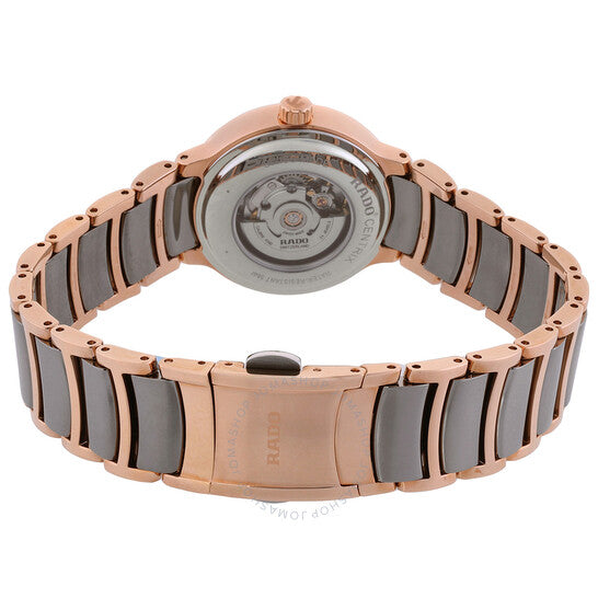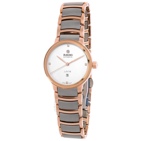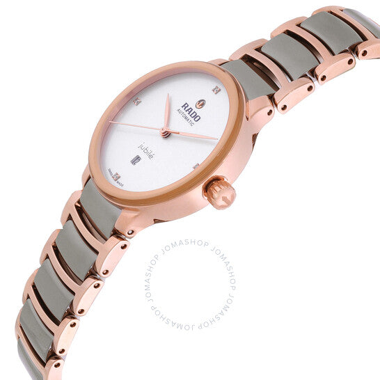 علبة من الفولاذ المقاوم للصدأ بلون الذهب الوردي، مع سوار من الفولاذ المقاوم للصدأ بلونين (أسود وذهبي وردي). إطار ثابت من الفولاذ المقاوم للصدأ بلون الذهب الوردي. ميناء أبيض بعقارب بلون الذهب الوردي وعلامات ساعات من الألماس. نوع الميناء: تناظري. عرض التاريخ عند موضع الساعة السادسة. حركة أوتوماتيكية من رادو كاليبر R582 مع احتياطي طاقة لمدة 48 ساعة. زجاج ياقوت مقاوم للخدش. هيكل دائري، مقاسه 30 مم. مشبك قابل للطي مع مفتاح أمان. مقاومة للماء حتى عمق 50 مترًا / 165 قدمًا. الوظائف: التاريخ، الساعة، الدقائق، الثانية. معلومات إضافية: العلبة الأصلية، بطاقة الضمان الدولية، دليل الاستخدام (ملحقات كاملة). سلسلة سنتركس. تصميم ساعة فاخرة. ملصق الساعة: صناعة سويسرية. ساعة رادو سنتركس أوتوماتيكية نسائية بمينا أبيض مرصع بالألماس R30019722.