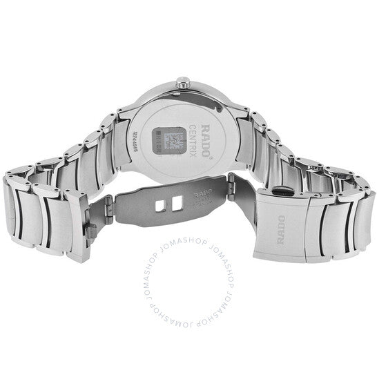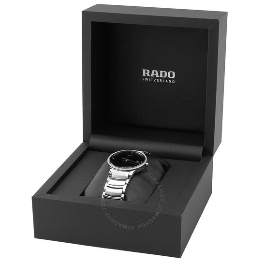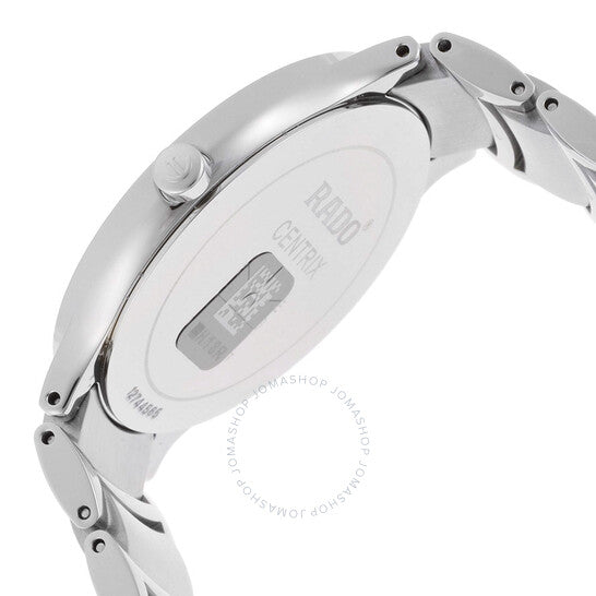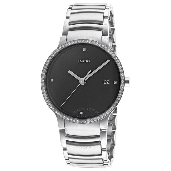 علبة من الفولاذ المقاوم للصدأ مع سوار من الفولاذ المقاوم للصدأ. إطار ثابت من الفولاذ المقاوم للصدأ مرصع بالألماس الأبيض. ميناء أسود بعقارب فضية اللون وعلامات ساعات من الألماس. مرصع بالألماس عند مواضع الساعات 3 و6 و9 و12. نوع الميناء: تناظري. عرض التاريخ عند موضع الساعة 3. حركة كوارتز من رادو عيار 115. زجاج ياقوت مقاوم للخدش. تاج قابل للسحب/الدفع. غطاء خلفي صلب. شكل دائري. حجم العلبة: 38 مم. سمكها: 7.3 مم. عرض السوار: 22 مم. مشبك قابل للطي بزر ضغط. مقاومة للماء حتى عمق 30 مترًا / 100 قدم. الوظائف: التاريخ، الساعة، الدقائق، الثانية. سلسلة سنتركس. طراز ساعة رسمية. علامة الساعة: صناعة سويسرية. ساعة رادو سنتركس للرجال بمينا أسود من الفولاذ المقاوم للصدأ، رقمها R30630713.