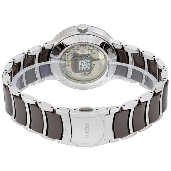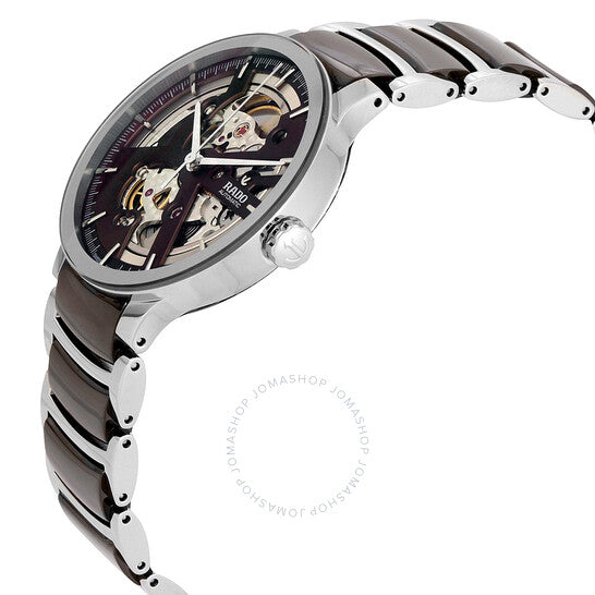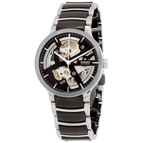 علبة من الفولاذ المقاوم للصدأ مع سوار من الفولاذ المقاوم للصدأ بلمسات سيراميك بنية. إطار ثابت من الفولاذ المقاوم للصدأ. ميناء أسود (قلب مفتوح) بعقارب فضية اللون وعلامات ساعات. علامات دقائق حول الحافة الخارجية. نوع الميناء: تناظري. حركة أوتوماتيكية من رادو عيار 734 مع احتياطي طاقة يصل إلى 80 ساعة. زجاج من الياقوت المقاوم للخدش. تاج قابل للسحب/الدفع. غطاء خلفي شفاف. شكل دائري. حجم العلبة: 38 مم. سمكها: 10.1 مم. عرض السوار: 20 مم. مشبك قابل للطي بزر ضغط. مقاومة للماء حتى عمق 30 مترًا / 100 قدم. الوظائف: الساعة، الدقيقة، الثانية. سلسلة سنتركس أوبن هارت. تصميم ساعة فاخرة. علامة الساعة: صناعة سويسرية. تنوعات المنتج: 01.734.0179.3.030. ساعة رادو سنتركس أوبن هارت أوتوماتيكية للرجال R30179302.