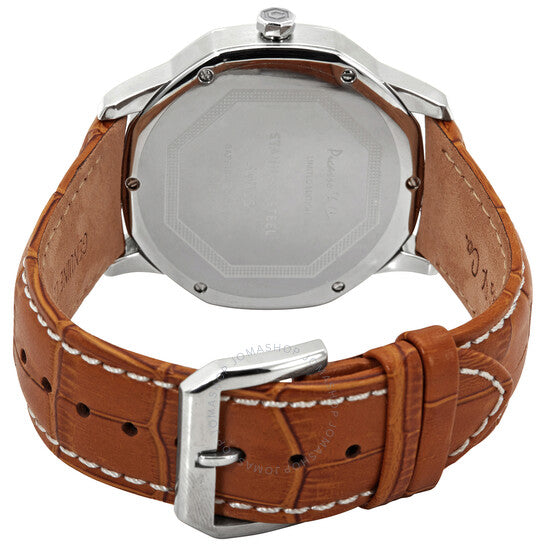 علبة من الفولاذ المقاوم للصدأ مع سوار جلدي بني. إطار ثابت من الفولاذ المقاوم للصدأ. ميناء أزرق بعقارب فضية اللون وعلامات ساعات. نافذة عرض التاريخ عند موضع الساعة 3. ميناء فرعي للثواني الصغيرة فوق موضع الساعة 6. آلية حركة كوارتز. زجاج ياقوتي مقاوم للخدش. تاج قابل للسحب/الدفع. غطاء خلفي صلب. شكل مثمن. حجم العلبة: 42 مم. سمكها: 9 مم. عرض السوار: 22 مم. مشبك تانغ. مقاومة للماء حتى عمق 100 متر / 330 قدمًا. الوظائف: التاريخ، الساعة، الدقائق، الثواني. سلسلة تشارمر. تصميم كاجوال. ساعة بيكاسو آند كو تشارمر كوارتز بمينا زرقاء PWCHBL001.