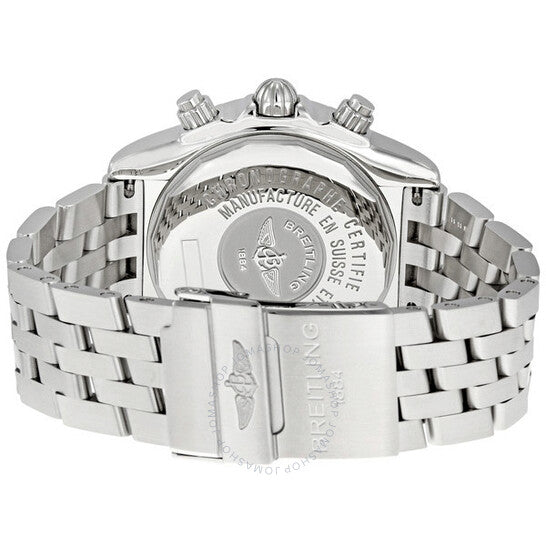 علبة من الفولاذ المقاوم للصدأ مع سوار من الفولاذ المقاوم للصدأ. إطار دوار أحادي الاتجاه من الفولاذ المقاوم للصدأ. ميناء أسود بعقارب وعلامات ساعات فضية مضيئة. علامات دقائق. مقياس سرعة الدوران يظهر حول الحافة الخارجية. نوع الميناء: تناظري. عقارب وعلامات مضيئة. عرض التاريخ عند موضع الساعة 3. كرونوغراف - ثلاثة أقراص فرعية تعرض: 12 ساعة، 30 دقيقة، و60 ثانية. حركة بريتلينغ أوتوماتيكية كاليبر 13 مع احتياطي طاقة لمدة 42 ساعة. كريستال ياقوت مقاوم للخدش. تاج مُغلق ببرغي. غطاء خلفي صلب. شكل دائري. حجم الهيكل: 39 مم. سمك الهيكل: 14.80 مم. عرض السوار: 20 مم. مشبك قابل للطي. مقاومة للماء حتى عمق 100 متر / 330 قدمًا. الوظائف: كرونوغراف، كرونومتر، تاريخ، ساعة، دقيقة، ثانية، مقياس سرعة الدوران. طراز ساعة رياضية. ملصق الساعة: صناعة سويسرية. ساعة بريتلينج كرونو جالاكتيك للرجال بمينا أسود A1336410-B719SS.