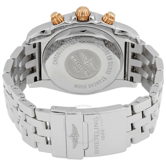 علبة وسوار من الفولاذ المقاوم للصدأ بلون فضي. إطار دوار أحادي الاتجاه. ميناء بني مع عقارب من الذهب الوردي وعلامات ساعات بأرقام رومانية. علامات دقائق حول الحافة الخارجية. نوع الميناء: تناظري. عقارب وعلامات مضيئة. عرض التاريخ بين الساعة 4 و5. كرونوغراف - ثلاثة أقراص فرعية تعرض: 60 ثانية، 30 دقيقة، و12 ساعة. حركة بريتلينغ كاليبر B01 أوتوماتيكية مع احتياطي طاقة يصل إلى 70 ساعة. زجاج ياقوت مقاوم للخدش. تاج لولبي. شكل العلبة دائري، مقاسها: 44 مم، سمكها: 16.95 مم. مقاومة للماء حتى عمق 500 متر / 1650 قدمًا. الوظائف: كرونوغراف، تاريخ، ساعة، دقيقة، ثانية. طراز ساعة غوص. علامة الساعة: صناعة سويسرية. ساعة بريتلينغ كرونوغراف أوتوماتيكية للرجال بمينا بني IB011012/Q567.375A.