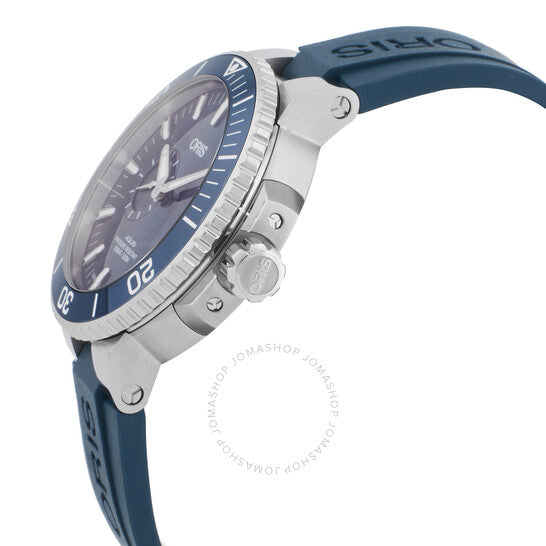 علبة من الفولاذ المقاوم للصدأ فضية اللون مع سوار مطاطي أزرق. إطار سيراميك أزرق دوار أحادي الاتجاه. ميناء أزرق بنقشة أشعة الشمس مع عقارب ومؤشرات ساعات فضية مضيئة. مؤشرات دقائق حول الحافة الخارجية. نوع الميناء: تناظري. عقارب ومؤشرات مضيئة. عرض التاريخ عند موضع الساعة 3. حركة أوريس أوتوماتيكية كاليبر 743 مع احتياطي طاقة لمدة 38 ساعة. زجاج من الياقوت المقاوم للخدش. تاج لولبي. غطاء خلفي صلب. شكل العلبة دائري، مقاسها: 45.5 مم. عرض السوار: 24 مم. مشبك قابل للطي مع مفتاح أمان. مقاومة للماء حتى عمق 500 متر / 1650 قدمًا. الوظائف: كرونوغراف، تاريخ، ساعة، دقيقة، ثانية. طراز ساعة غوص. علامة الساعة: صناعة سويسرية. ساعة أوريس كرونوغراف أوتوماتيكية للرجال 01 743 7733 4155-07 4 24 69EB.