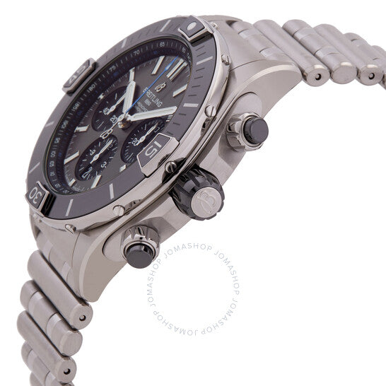 علبة وسوار من التيتانيوم الفضي اللون. إطار من التيتانيوم الفضي اللون. ميناء رمادي مع عقارب وعلامات ساعات فضية اللون. علامات دقائق حول الحافة الخارجية. نوع الميناء: تناظري. عقارب وعلامات مضيئة. كرونوغراف - ثلاثة أقراص فرعية تعرض: 60 ثانية، 30 دقيقة، و1/10 من الثانية. حركة بريتلينغ كاليبر 01 أوتوماتيكية، تحتوي على 47 جوهرة، مكونة من 346 جزءًا، تنبض بسرعة 28800 ذبذبة في الساعة، ولديها احتياطي طاقة يصل إلى حوالي 70 ساعة. زجاج من الياقوت المقاوم للخدش. تاج لولبي. غطاء خلفي شفاف. شكل العلبة دائري، مقاس العلبة: 44 مم، سمكها: 14.4 مم. عرض السوار: 22 مم. مشبك قابل للطي مع مفتاح أمان. مقاومة للماء حتى عمق 200 متر / 660 قدمًا. الوظائف: كرونوغراف، ساعة، دقيقة، ثانية. طراز ساعة رياضية. علامة الساعة: صناعة سويسرية. ساعة بريتلينج كرونوغراف أوتوماتيكية للرجال EB0136251M1E1.