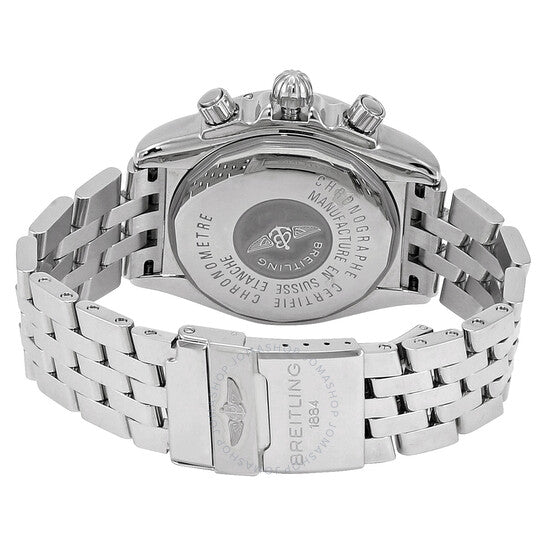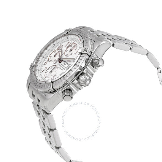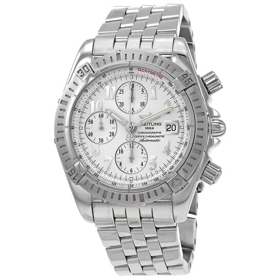 علبة وسوار من الفولاذ المقاوم للصدأ فضي اللون. إطار دوار أحادي الاتجاه فضي اللون. ميناء أبيض بعقارب فضية اللون وعلامات ساعات بأرقام عربية. مقياس سرعة الدوران حول الحافة الخارجية، وعلامات الدقائق حول الحافة الخارجية. نوع الميناء: تناظري. عقارب وعلامات مضيئة. عرض التاريخ عند موضع الساعة 3. كرونوغراف - ثلاثة أقراص فرعية تعرض: 60 ثانية، 30 دقيقة، و12 ساعة. حركة بريتلينغ كاليبر 13 أوتوماتيكية، مبنية على ETA Valjoux 7750، تحتوي على 25 جوهرة، تنبض بمعدل 28800 ذبذبة في الساعة، ولديها احتياطي طاقة لمدة 42 ساعة تقريبًا. زجاج ياقوت مقاوم للخدش. تاج لولبي. شكل العلبة دائري، حجم العلبة: 43.7 مم، سمكها: 17.1 مم. مشبك قابل للطي. مقاومة للماء حتى عمق 300 متر / 1000 قدم. الوظائف: كرونوغراف، تاريخ، ساعة، دقيقة، ثانية. ساعة فاخرة. علامة الساعة: صناعة سويسرية. ساعة بريتلينغ كرونوغراف أوتوماتيكية للرجال بمينا أبيض A1335611/A573.372A.