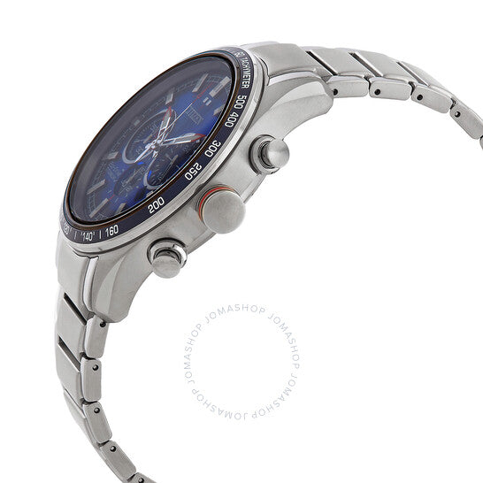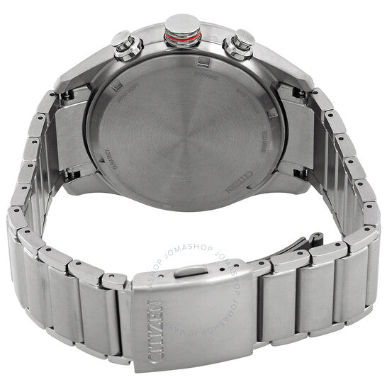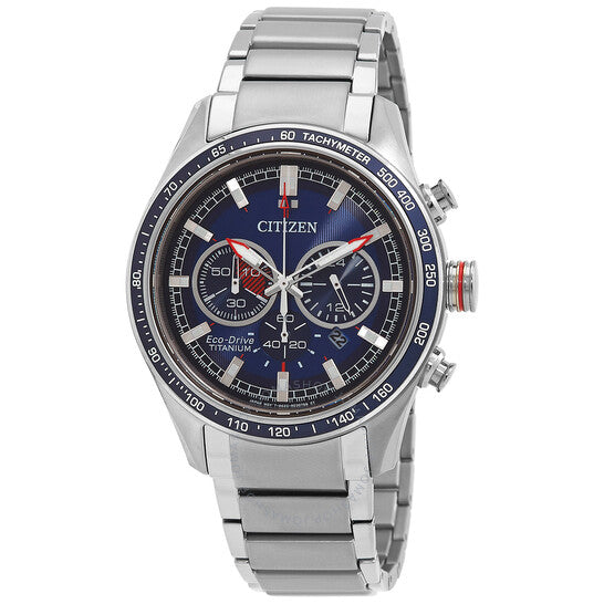 علبة وسوار من التيتانيوم فضي اللون. إطار من التيتانيوم الأزرق. ميناء أزرق مع عقارب ومؤشرات ساعات فضية اللون. مقياس سرعة الدوران حول الحافة الخارجية. نوع الميناء: تناظري. عقارب ومؤشرات مضيئة. عرض التاريخ بين الساعة 4 و5. كرونوغراف - ثلاثة موانئ فرعية تعرض: 60 ثانية، 60 دقيقة، و24 ساعة. آلية حركة إيكو درايف. كريستال ياقوتي مقاوم للخدش. غطاء خلفي صلب. شكل العلبة دائري، مقاسها: 43 مم، سمكها: 12 مم. مشبك قابل للطي. مقاومة للماء حتى عمق 100 متر / 330 قدم. الوظائف: كرونوغراف، تاريخ، ساعة، دقيقة، ثانية. طراز ساعة رياضية. ملصق الساعة: Japan Movt. ساعة سيتيزن كرونوغراف زرقاء للرجال CA4490-85L.