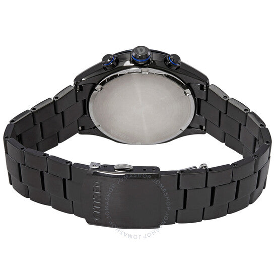 علبة وسوار من الفولاذ المقاوم للصدأ مطليان باللون الأسود بتقنية PVD. إطار ثابت مطلي باللون الأزرق. ميناء أسود بعقارب وعلامات ساعات فضية اللون. علامات دقائق حول الحافة الخارجية. نوع الميناء: تناظري. عقارب وعلامات مضيئة. عرض التاريخ عند موضع الساعة الثالثة. كرونوغراف - موانئ فرعية تعرض: ٢٤ ساعة، ٦٠ دقيقة، ٦٠ ثانية. حركة سيتيزن عيار B612 إيكو-درايف. زجاج معدني مقاوم للخدش. تاج لولبي. غطاء خلفي صلب. شكل دائري. حجم الهيكل: ٤١ مم. سمك الهيكل: ١١ مم. عرض السوار: ٢٢ مم. مشبك قابل للطي بزر ضغط. مقاومة للماء حتى عمق ١٠٠ متر / ٣٣٠ قدمًا. الوظائف: كرونوغراف، تاريخ، ساعة، دقيقة، ثانية. تصميم كاجوال. ملصق الساعة: Japan Movt. ساعة سيتيزن كرونوغراف إيكو-درايف للرجال بمينا سوداء CA0438-52E.