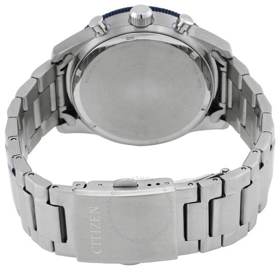 علبة وسوار من الفولاذ المقاوم للصدأ فضي اللون. إطار أزرق من الفولاذ المقاوم للصدأ. ميناء أبيض بعقارب فضية اللون ومؤشرات ساعات بأرقام عربية. مؤشرات دقائق حول الحافة الخارجية. نوع الميناء: تناظري. عقارب ومؤشرات مضيئة. عرض التاريخ بين الساعة الرابعة والخامسة. كرونوغراف - ثلاثة موانئ فرعية تعرض: 60 ثانية، 60 دقيقة، و24 ساعة. آلية حركة سيتيزن كاليبر إيكو-درايف B620 إيكو-درايف. زجاج معدني مقاوم للخدش. غطاء خلفي صلب. شكل العلبة دائري، مقاسها: 43 مم، سمكها: 12.9 مم. مشبك قابل للطي مع مفتاح أمان. مقاومة للماء حتى عمق 100 متر / 330 قدم. الوظائف: كرونوغراف، تاريخ، ساعة، دقيقة، ثانية، تعمل بالطاقة الشمسية. طراز ساعة رياضية. ملصق الساعة: Japan Movt. ساعة سيتيزن كرونوغراف إيكو-درايف للرجال بمينا بيضاء CA4554-84H.