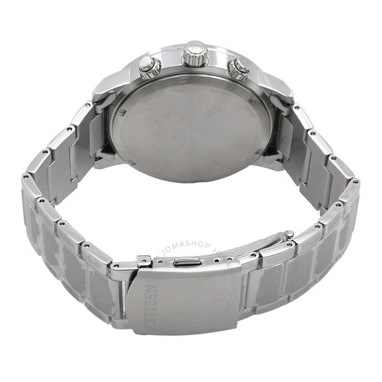 علبة وسوار من الفولاذ المقاوم للصدأ فضي اللون. إطار ثابت من الفولاذ المقاوم للصدأ فضي اللون. ميناء أزرق مع عقارب ومؤشرات ساعات فضية اللون. مقياس دقائق حول الحافة الداخلية. نوع الميناء: تناظري. عقارب ومؤشرات مضيئة. عرض التاريخ عند موضع الساعة 3. كرونوغراف - ثلاثة موانئ فرعية تعرض: 60 ثانية، 60 دقيقة، و24 ساعة. حركة كوارتز سيتيزن كاليبر B612. كريستال ياقوت مقاوم للخدش. غطاء خلفي صلب. شكل دائري، مقاس العلبة: 43 مم، سمكها: 11.5 مم. مشبك قابل للطي مع مفتاح أمان. مقاومة للماء حتى عمق 100 متر / 330 قدم. الوظائف: كرونوغراف، تاريخ، ساعة، دقيقة، ثانية. طراز ساعة رياضية. ملصق الساعة: Japan Movt. ساعة سيتيزن كرونوغراف كوارتز زرقاء للرجال CA0840-87M.