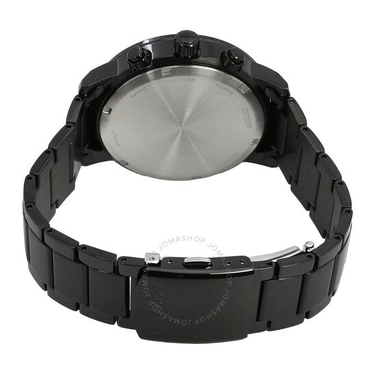 علبة وسوار من الفولاذ المقاوم للصدأ باللون الأسود. إطار ثابت من الفولاذ المقاوم للصدأ باللون الأسود. ميناء أزرق مع عقارب ومؤشرات ساعات باللون الذهبي الوردي. مقياس دقائق حول الحافة الداخلية. نوع الميناء: تناظري. عقارب ومؤشرات مضيئة. عرض التاريخ عند موضع الساعة 3. كرونوغراف - ثلاثة موانئ فرعية تعرض: 60 ثانية، 60 دقيقة، و24 ساعة. حركة كوارتز سيتيزن كاليبر B612. كريستال ياقوت مقاوم للخدش. غطاء خلفي صلب. شكل دائري، مقاس العلبة: 43 مم، سمكها: 11.5 مم. مشبك قابل للطي مع مفتاح أمان. مقاومة للماء حتى عمق 100 متر / 330 قدم. الوظائف: كرونوغراف، تاريخ، ساعة، دقيقة، ثانية. طراز ساعة رياضية. ملصق الساعة: Japan Movt. ساعة سيتيزن كرونوغراف كوارتز زرقاء للرجال CA0845-83L.