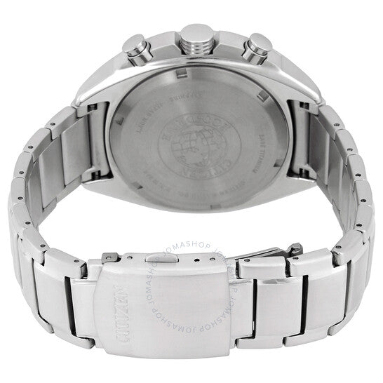 علبة وسوار من التيتانيوم الرمادي. إطار ثابت من التيتانيوم الرمادي. ميناء فضي مع عقارب سوداء مضيئة وعلامات ساعات رقمية عربية. علامات دقائق رقمية (بفاصل ٥ دقائق). علامات دقائق حول الحافة الخارجية. نوع الميناء: تناظري. عقارب مضيئة. عرض التاريخ بين موضعي الساعة الرابعة والخامسة. كرونوغراف - ثلاثة أقراص فرعية سوداء تعرض: ٦٠ ثانية، ٦٠ دقيقة، و٢٤ ساعة. حركة سيتيزن عيار B620 إيكو-درايف. زجاج ياقوت مقاوم للخدش. تاج قابل للسحب/الدفع. غطاء خلفي صلب. شكل دائري. حجم الهيكل: ٤٤ مم. سمك الهيكل: ١٣ مم. عرض السوار: ٢٢ مم. مشبك قابل للطي. مقاومة للماء حتى عمق ١٠٠ متر / ٣٣٠ قدمًا. الوظائف: كرونوغراف، تاريخ، ساعة، دقيقة، ثانية. تصميم كاجوال. ساعة سيتيزن كرونوغراف للرجال بمينا فضية من التيتانيوم CA4310-54A.