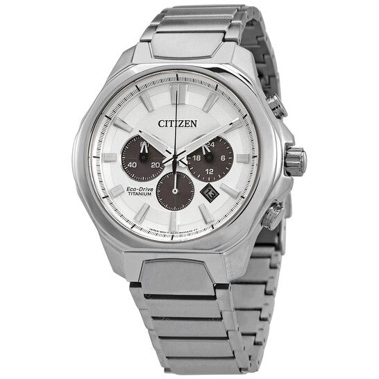 علبة وسوار من التيتانيوم الرمادي. إطار ثابت من التيتانيوم الرمادي. ميناء فضي مع عقارب ومؤشرات ساعات فضية مضيئة. مؤشرات دقائق حول الحافة الخارجية. نوع الميناء: تناظري. عقارب ومؤشرات مضيئة. عرض التاريخ بين موضعي الساعة الرابعة والخامسة. كرونوغراف - ثلاثة موانئ فرعية سوداء تعرض: ٦٠ ثانية، ٦٠ دقيقة، و٢٤ ساعة. آلية حركة إيكو درايف. زجاج معدني مقاوم للخدش. تاج قابل للسحب/الدفع. غطاء خلفي صلب. شكل دائري. حجم الهيكل: ٤٣ مم. سمك الهيكل: ١٣ مم. عرض السوار: ٢١ مم. مشبك قابل للطي بزر ضغط. مقاومة للماء حتى عمق ١٠٠ متر / ٣٣٠ قدمًا. الوظائف: كرونوغراف، تاريخ، ساعة، دقيقة، ثانية. تصميم كاجوال. ملصق الساعة: Japan Movt. ساعة سيتيزن كرونوغراف للرجال بمينا فضي من التيتانيوم CA4320-51A.