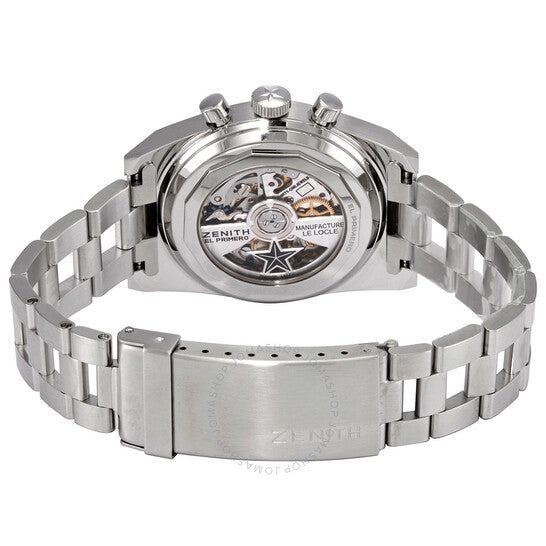 علبة من الفولاذ المقاوم للصدأ مع سوار من الفولاذ المقاوم للصدأ. إطار ثابت من الفولاذ المقاوم للصدأ. ميناء بني متدرج اللون مع عقارب وعلامات ساعات فضية اللون. علامات دقائق. علامات تاكيميتر حول الحافة الخارجية. نوع الميناء: تناظري. عقارب وعلامات مضيئة. عرض التاريخ بين موضعي الساعة الرابعة والخامسة. كرونوغراف - ثلاثة أقراص فرعية تعرض: ٦٠ ثانية، ٣٠ دقيقة، و١٢ ساعة. حركة أوتوماتيكية من عيار زينيث، El Primero 400، تحتوي على ٣١ جوهرة، تتكون من ٢٧٨ جزءًا، تنبض بتردد ٣٦٠٠٠ ذبذبة في الساعة، وتتمتع باحتياطي طاقة يقارب ٥٠ ساعة. زجاج ياقوت مقاوم للخدش. تاج قابل للسحب/الدفع. غطاء خلفي شفاف. شكل العلبة: تونيو. حجم العلبة: ٣٧ مم. سمك العلبة: ١٢.٦ مم. عرض السوار: ١٩ مم. مقاومة للماء حتى عمق ٥٠ مترًا / ١٦٥ قدمًا. الوظائف: كرونوغراف، مقياس سرعة الدوران، التاريخ، الساعات، الدقائق، الثواني. سلسلة كرونو ماستر ريفايفل A385. تصميم ساعة فاخر. علامة الساعة: صناعة سويسرية. ساعة زينيث كرونو ماستر ريفايفل A385 كرونوغراف أوتوماتيكية للرجال 03.A384.400/385.M385.