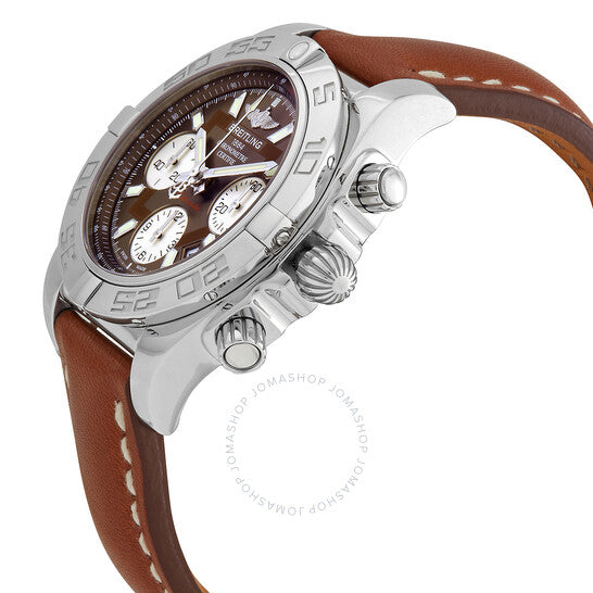 علبة فضية اللون من الفولاذ المقاوم للصدأ مع سوار جلدي بني. إطار دوار أحادي الاتجاه. ميناء بني مع عقارب وعلامات ساعات فضية اللون. علامات دقائق حول الحافة الخارجية. نوع الميناء: تناظري. عقارب وعلامات مضيئة. عرض التاريخ بين الساعة الرابعة والخامسة. كرونوغراف - ثلاثة أقراص فرعية تعرض: ٦٠ ثانية، ٣٠ دقيقة، و١٢ ساعة. حركة بريتلينغ كاليبر ٠١ أوتوماتيكية، تحتوي على ٤٧ جوهرة، تتكون من ٣٤٦ جزءًا، تنبض بتردد ٢٨٨٠٠ ذبذبة في الساعة، ولديها احتياطي طاقة يقارب ٧٠ ساعة. زجاج ياقوت مقاوم للخدش. تاج لولبي. شكل العلبة دائري، حجمها: ٤١ مم. مشبك تانغ. مقاومة للماء حتى عمق ٣٠٠ متر / ١٠٠٠ قدم. الوظائف: كرونوغراف، تاريخ، ساعة، دقيقة، ثانية. سلسلة كرونومات ٤١. تصميم ساعة فاخرة. علامة الساعة: صناعة سويسرية. ساعة بريتلينغ كرونومات 41 كرونوغراف أوتوماتيكية للرجال AB014012/Q583.425X.A18BA.1.