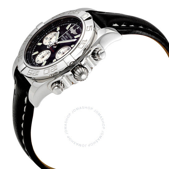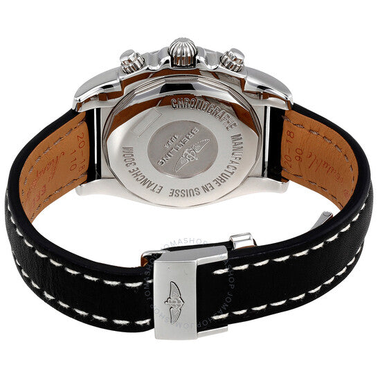 علبة من الفولاذ المقاوم للصدأ مع سوار جلدي أسود. إطار دوار أحادي الاتجاه من الفولاذ المقاوم للصدأ. ميناء أسود بعقارب ومؤشرات ساعات فضية مضيئة. مؤشرات دقائق. مؤشرات 1/100. علامات تاكيميتر حول الحافة الخارجية. نوع الميناء: تناظري. عقارب ومؤشرات مضيئة. عرض التاريخ بين موضعي الساعة 4 و5. كرونوغراف - ثلاثة موانئ فرعية تعرض: 60 ثانية، 30 دقيقة، و12 ساعة. حركة بريتلينغ كاليبر 01 أوتوماتيكية باحتياطي طاقة يبلغ حوالي 70 ساعة. زجاج ياقوت مقاوم للخدش. تاج لولبي. غطاء خلفي صلب. حجم العلبة: 41 مم. سمكها: 15.40 مم. شكلها دائري. عرض السوار: 20 مم / 18 مم. مشبك قابل للطي. مقاومة للماء حتى عمق 300 متر / 1000 قدم. الوظائف: كرونوغراف، كرونومتر، تاريخ، ساعة، دقيقة، ثانية، تاكيميتر. ساعة فاخرة. صناعة سويسرية. ساعة بريتلينغ كرونومات ٤١ كرونوغراف للرجال AB014012/BA52BKLD.