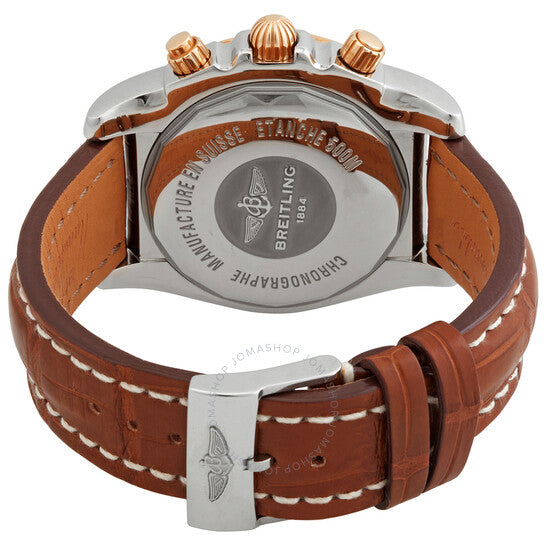 علبة فضية اللون من الفولاذ المقاوم للصدأ مع سوار بني من جلد التمساح. إطار دوار أحادي الاتجاه من الذهب الوردي عيار 18 قيراطًا. ميناء أبيض أنتاركتيكي مع عقارب وعلامات ساعات من الذهب الوردي. مقياس سرعة الدوران. نوع الميناء: تناظري. عقارب وعلامات مضيئة. عرض التاريخ بين الساعة 4 و5. كرونوغراف - ثلاثة أقراص فرعية تعرض: 60 ثانية، 30 دقيقة، و12 ساعة. حركة أوتوماتيكية. كريستال ياقوت مقاوم للخدش. تاج لولبي. غطاء خلفي صلب. شكل دائري، حجم العلبة: 43.5 مم. مشبك تانغ. مقاومة للماء حتى عمق 500 متر / 1650 قدمًا. الوظائف: كرونوغراف، تاريخ، ساعة، دقيقة، ثانية. سلسلة كرونومات 44. تصميم ساعة فاخرة. علامة الساعة: صناعة سويسرية. ساعة بريتلينغ كرونومات 44 كرونوغراف أوتوماتيكية للرجال CB011012/A696.748P.A20BA.1.