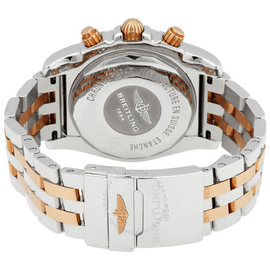 علبة وسوار من الفولاذ المقاوم للصدأ والذهب الوردي عيار 18 قيراطًا. إطار دوار أحادي الاتجاه. ميناء من عرق اللؤلؤ مع عقارب بلون الذهب الوردي وعلامات ساعات بأرقام رومانية. مقياس سرعة الدوران. نوع الميناء: تناظري. عقارب وعلامات مضيئة. عرض التاريخ بين موضعي الساعة 4 و5. كرونوغراف - ثلاثة أقراص فرعية تعرض: 60 ثانية، 30 دقيقة، و12 ساعة. حركة بريتلينغ كاليبر 01 أوتوماتيكية، تحتوي على 47 جوهرة، مكونة من 346 جزءًا، تنبض بمعدل 28800 ذبذبة في الساعة، ولديها احتياطي طاقة يصل إلى حوالي 70 ساعة. زجاج من الياقوت المقاوم للخدش. تاج لولبي. شكل العلبة دائري، مقاسها: 44 مم. مشبك قابل للطي. مقاومة للماء حتى عمق 500 متر / 1650 قدمًا. الوظائف: كرونوغراف، تاريخ، ساعة، دقيقة، ثانية. سلسلة كرونومات 44. طراز ساعة الغوص. علامة الساعة: سويسرية الصنع. ساعة بريتلينج كرونومات 44 كرونوغراف أوتوماتيكية للرجال IB011012/A692.375C.