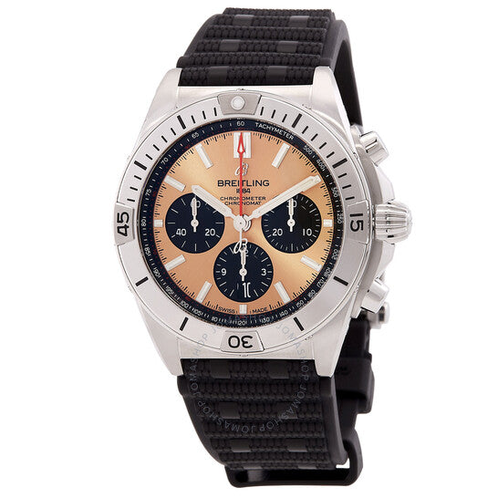 علبة فضية اللون من الفولاذ المقاوم للصدأ والبلاتين مع سوار مطاطي أسود. إطار دوار أحادي الاتجاه من الفولاذ المقاوم للصدأ والبلاتين. ميناء بلون السلمون مع عقارب وعلامات ساعات فضية اللون. علامات دقائق حول الحافة الخارجية. نوع الميناء: تناظري. عقارب وعلامات مضيئة. عرض التاريخ عند موضع الساعة السادسة. كرونوغراف - ثلاثة أقراص فرعية تعرض: 60 ثانية، 30 دقيقة، و1/10 من الثانية. حركة بريتلينغ كاليبر 01 أوتوماتيكية، تحتوي على 47 جوهرة، مكونة من 346 جزءًا، تنبض بمعدل 28800 ذبذبة في الساعة، ولديها احتياطي طاقة لمدة 70 ساعة تقريبًا. زجاج ياقوت مقاوم للخدش. تاج لولبي. غطاء خلفي شفاف. شكل دائري، حجم العلبة: 42 مم، سمك العلبة: 15.1 مم. عرض السوار: 22 مم. مشبك قابل للطي. مقاومة للماء حتى عمق 200 متر / 660 قدمًا. الوظائف: كرونوغراف، تاريخ، ساعات، دقائق، ثوانٍ. سلسلة B01. طراز ساعة رياضية. علامة الساعة: صناعة سويسرية. ساعة بريتلينغ B01 كرونوغراف أوتوماتيكية للرجال AB0134101K1S1.