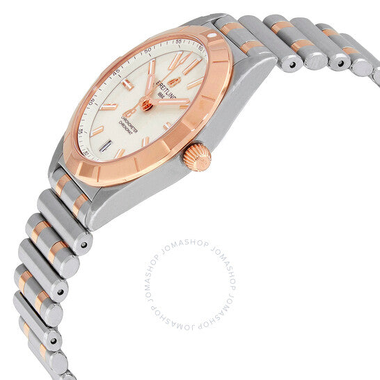 علبة من الفولاذ المقاوم للصدأ مع سوار من الفولاذ المقاوم للصدأ بوصلات من الذهب الوردي عيار 18 قيراطًا. إطار دوار أحادي الاتجاه من الذهب الوردي عيار 18 قيراطًا. ميناء أبيض مع عقارب مضيئة بلون الذهب الوردي وعلامات ساعات. علامات دقائق بأرقام عربية (بفاصل 5 دقائق). علامات دقائق حول الحافة الخارجية. نوع الميناء: تناظري. عقارب وعلامات مضيئة. عرض التاريخ عند موضع الساعة 6. حركة كوارتز بريتلينغ كاليبر 77. كريستال ياقوت مقاوم للخدش. تاج قابل للسحب/الدفع. غطاء خلفي صلب. شكل دائري. حجم العلبة: 32 مم. سمك العلبة: 8.54 مم. عرض السوار: 16 مم. مشبك قابل للطي بزر ضغط. مقاومة للماء حتى عمق 100 متر / 330 قدمًا. الوظائف: التاريخ، الساعة، الدقيقة، الثانية، الكرونومتر. سلسلة كرونومات. تصميم ساعة فاخرة. ملصق الساعة: صناعة سويسرية. ساعة بريتلينج كرونومات كوارتز كرونوميتر بمينا أبيض للسيدات U77310101A1U1.