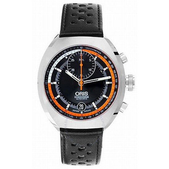 علبة فضية اللون من الفولاذ المقاوم للصدأ مع حزام من الجلد الأسود وخياطة برتقالية. إطار ثابت من الفولاذ المقاوم للصدأ فضي اللون. ميناء أسود مع عقارب فضية اللون وعلامات ساعات عصا. علامات دقائق حول الحافة الخارجية. نوع الميناء: تناظري. عقارب وعلامات مضيئة. عرض التاريخ عند موضع الساعة 6. ميناء فرعي واحد يعرض: ثانية صغيرة. أوريس كاليبر 672، قاعدة ETA 7750 حركة أوتوماتيكية، مبنية على ETA 7750، تحتوي على 25 جوهرة، تنبض بمعدل 28800 ذبذبة في الساعة، ولديها احتياطي طاقة لمدة 48 ساعة تقريبًا. كريستال ياقوت مقاوم للخدش ومضاد للانعكاس. غطاء خلفي شفاف. شكل العلبة دائري، حجم العلبة: 40 مم. مشبك تانغ. مقاومة للماء حتى عمق 50 مترًا / 165 قدمًا. الوظائف: كرونوغراف، تاريخ، ساعة، دقيقة، ثانية، مقياس سرعة الدوران. معلومات إضافية: تتضمن سوارًا إضافيًا من الفولاذ المقاوم للصدأ. سلسلة كرونوريس. طراز ساعة رياضية. ملصق الساعة: صناعة سويسرية. إصدارات مختلفة من المنتج: أوريس 672 7564 4154 LS، 67275644154LS، 672.7564.4154.LS. ساعة أوريس كرونوريس كرونوغراف أوتوماتيكية للرجال 672-7564-4154LS.