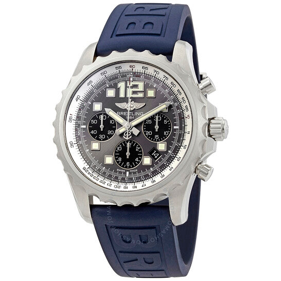 علبة من الفولاذ المقاوم للصدأ مع سوار مطاطي أزرق. إطار دوار ثنائي الاتجاه من الفولاذ المقاوم للصدأ. ميناء رمادي اللون مع عقارب ومؤشرات ساعات فضية مضيئة. يظهر رقم عربي عند موضع الساعة ١٢. علامات الدقائق. علامات مسطرة منزلقة (أو "مسطرة حاسوبية للملاحة") حول الحافة الخارجية. نوع الميناء: تناظري. عقارب ومؤشرات مضيئة. عرض التاريخ بين موضعي الساعة ٤ و٥. كرونوغراف - ثلاثة موانئ فرعية سوداء تعرض: ٦٠ ثانية، ٣٠ دقيقة، و١٢ ساعة. حركة بريتلينغ أوتوماتيكية كاليبر ٢٣ مع احتياطي طاقة ٤٢ ساعة. كريستال ياقوت مقاوم للخدش. تاج لولبي. غطاء خلفي صلب. شكل دائري. حجم العلبة: ٤٦ مم. سمكها: ١٦ مم. مشبك تانغ. مقاومة للماء حتى عمق ٢٠٠ متر / ٦٦٠ قدمًا. الوظائف: كرونوغراف، تاريخ، ساعات، دقائق، ثوانٍ، مسطرة منزلقة. معلومات إضافية: "مسطرة حاسبة" أو "كمبيوتر الملاحة"، تتيح لك إجراء حسابات جوية مختلفة، مثل استهلاك الوقود، وأوقات الصعود، وتحويل الأميال إلى أميال بحرية أو كيلومترات. تصميم ساعة فاخر. علامة الساعة: سويسرية الصنع. ساعة بريتلينغ كرونوسبيس كرونوغراف أوتوماتيكية للرجال، بمينا رمادي، A2336035/F555-159S-A20S.1