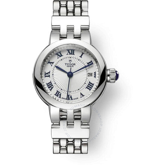 علبة وسوار من الفولاذ المقاوم للصدأ فضي اللون. إطار ثابت من الفولاذ المقاوم للصدأ فضي اللون. ميناء من الأوبالين مع عقارب بحرية ومؤشرات ساعات بأرقام رومانية. نوع الميناء: تناظري. عرض التاريخ عند موضع الساعة 3. حركة أوتوماتيكية من تيودور كاليبر T201، مبنية على ETA 2671، تحتوي على 25 جوهرة، تنبض بمعدل 28800 ذبذبة في الساعة، ولديها احتياطي طاقة لمدة 38 ساعة تقريبًا. زجاج من الياقوت المقاوم للخدش. تاج لولبي. غطاء خلفي صلب. شكل العلبة دائري، مقاسها: 26 مم، سمكها: 11 مم. مشبك قابل للطي مع مفتاح أمان. مقاومة للماء حتى عمق 100 متر / 330 قدمًا. الوظائف: التاريخ، الساعة، الدقيقة، الثانية. سلسلة كلير دي روز. طراز ساعة رسمية. علامة الساعة: صناعة سويسرية. تنوعات المنتج: 35200-0001. ساعة تيودور كلير دي روز أوتوماتيكية نسائية M35200-0001.