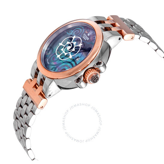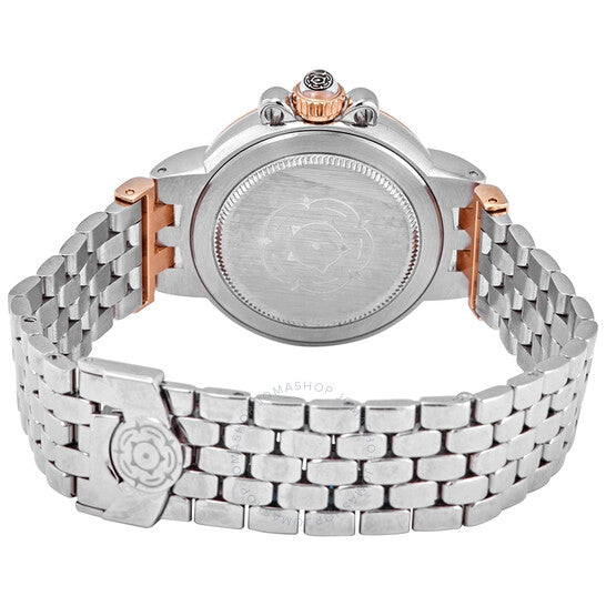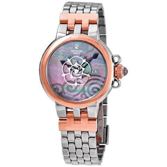 علبة من الفولاذ المقاوم للصدأ بسوار من الفولاذ المقاوم للصدأ ثنائي اللون (فضي وذهبي وردي). إطار ثابت من الذهب الوردي. ميناء من عرق اللؤلؤ مع عقارب سوداء هيكلية. بدون مؤشرات. نوع الميناء: تناظري. عرض التاريخ عند موضع الساعة 3. حركة أوتوماتيكية من عيار تيودور 2671 مع احتياطي طاقة لمدة 38 ساعة. زجاج من الياقوت المقاوم للخدش. تاج لولبي. غطاء خلفي صلب. شكل دائري. حجم العلبة: 30 مم. مشبك تانغ. مقاومة للماء حتى عمق 100 متر / 330 قدمًا. الوظائف: التاريخ، اليوم، الساعة، الدقيقة، الثانية. تصميم كاجوال. علامة الساعة: صناعة سويسرية. ساعة تيودور كلير دي روز أوتوماتيكية نسائية M35401-0003.