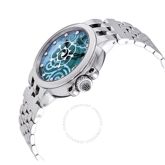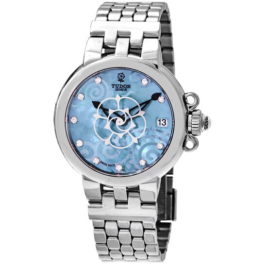 علبة من الفولاذ المقاوم للصدأ مع سوار من الفولاذ المقاوم للصدأ. إطار ثابت من الفولاذ المقاوم للصدأ. ميناء أخضر من عرق اللؤلؤ مع عقارب سوداء هيكلية وعلامات ساعات من الألماس. نوع الميناء: تناظري. عرض التاريخ عند موضع الساعة 3. حركة أوتوماتيكية من عيار تيودور 2824 مع احتياطي طاقة لمدة 38 ساعة. زجاج من الياقوت المقاوم للخدش. تاج لولبي. غطاء خلفي صلب. شكل دائري. حجم العلبة: 34 مم. مشبك قابل للطي. مقاومة للماء حتى عمق 100 متر / 330 قدمًا. الوظائف: التاريخ، الساعة، الدقائق، الثواني. طراز ساعة رسمية. علامة الساعة: صناعة سويسرية. رقم الموديل: 35700-0009. ساعة تيودور كلير دي روز أوتوماتيكية نسائية مرصعة بالألماس M35700-0009.