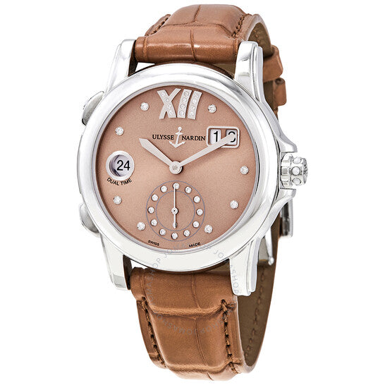 علبة من الفولاذ المقاوم للصدأ مع سوار من جلد التمساح البني. إطار ثابت. ميناء بني بنقشة أشعة الشمس مع عقارب فضية اللون وعلامات ساعات مرصعة بالألماس. نوع الميناء: تناظري. تاريخ مزدوج. ثانية واحدة - 60 ثانية. حركة أوتوماتيكية UN-334. زجاج ياقوتي مقاوم للخدش. تاج لولبي. حجم العلبة: 37.5 مم. شكلها دائري. مقاومة للماء حتى عمق 50 مترًا / 165 قدمًا. الوظائف: التاريخ، الساعة، الدقائق، الثواني. معلومات إضافية: ميناء مرصع بـ 32 ماسة. طراز ساعة فاخر. علامة الساعة: صناعة سويسرية. ساعة أوليس ناردين كلاسيك أوتوماتيكية نسائية 3343-222/30-09.