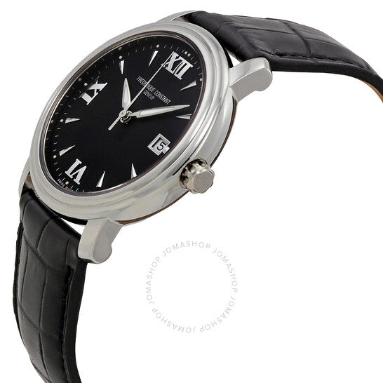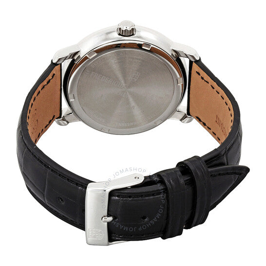 علبة من الفولاذ المقاوم للصدأ مع سوار جلدي أسود. إطار ثابت من الفولاذ المقاوم للصدأ. ميناء أسود بعقارب فضية اللون ومؤشرات ساعات. أرقام رومانية تُشير إلى الساعات 6 و9 و12. مؤشرات دقائق حول الحافة الخارجية. نوع الميناء: تناظري. عرض التاريخ عند الساعة 3. حركة كوارتز. زجاج ياقوتي مقاوم للخدش. غطاء خلفي صلب. حجم العلبة: 38 مم. شكل دائري. مشبك تانغ. مقاومة للماء حتى عمق 30 مترًا / 100 قدم. الوظائف: التاريخ، الساعة، الدقائق، الثواني. تصميم كاجوال. علامة الساعة: صناعة سويسرية. ساعة فريدريك كونستانت الكلاسيكية للرجال بمينا أسود FC-240HB3P6.