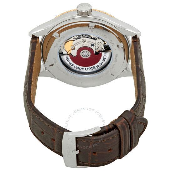 علبة من الفولاذ المقاوم للصدأ مع سوار جلدي بني داكن. إطار ثابت من الذهب الوردي المطلي بتقنية الترسيب الفيزيائي للبخار (PVD). ميناء فضي اللون مع عقارب ومؤشرات ساعات ذهبية وردية. أرقام رومانية تُشير إلى الساعات 3 و9 و12. مؤشرات دقائق حول الحافة الخارجية. نوع الميناء: تناظري. عقارب مضيئة. نافذة عرض التاريخ أعلى موضع الساعة 6. حركة أوريس أوتوماتيكية عيار 733، مبنية على سيليتا SW200-1، تحتوي على 26 جوهرة، تنبض بمعدل 28800 ذبذبة في الساعة، ولديها احتياطي طاقة لمدة 38 ساعة تقريبًا. زجاج ياقوت مقاوم للخدش. تاج قابل للسحب/الدفع. غطاء خلفي شفاف. شكل دائري، حجم العلبة: 42 مم. سمك العلبة: 13 مم. عرض السوار: 20 مم. مشبك تانغ. مقاومة للماء حتى عمق 50 مترًا / 165 قدمًا. الوظائف: التاريخ، الساعة، الدقيقة، الثانية. سلسلة التاريخ الكلاسيكية. طراز ساعة رسمية. ملصق الساعة: صناعة سويسرية. ساعة أوريس كلاسيك ديت أوتوماتيكية للرجال بمينا فضي 01 733 7719 4371-07 5 20 32.