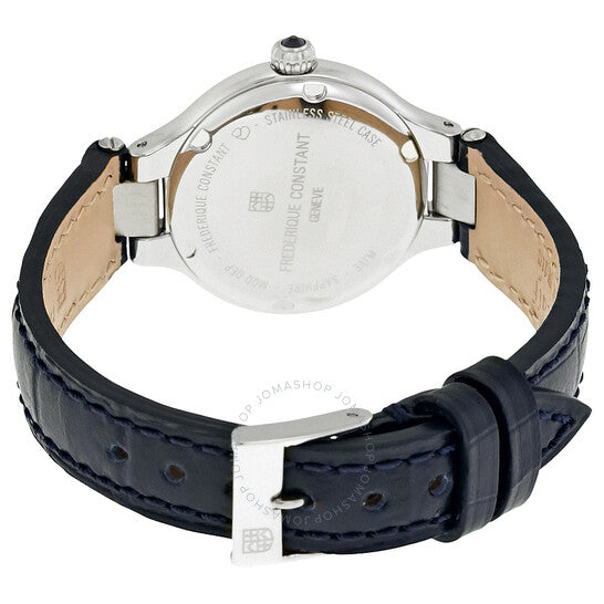 علبة من الفولاذ المقاوم للصدأ مع سوار من جلد التمساح الأزرق. إطار ثابت من الفولاذ المقاوم للصدأ. ميناء مركزي من عرق اللؤلؤ مع نقش غيوشيه، مع عقارب فولاذية زرقاء وعلامات ساعات بأرقام رومانية. نوع الميناء: تناظري. حركة كوارتز من عيار فريدريك كونستانت FC-200. زجاج ياقوت مقاوم للخدش. غطاء خلفي صلب. حجم العلبة: 28 مم. سمكها: 8 مم. شكلها دائري. عرض السوار: 13 مم. مشبك تانغ. مقاومة للماء حتى عمق 30 مترًا / 100 قدم. وظائفها: الساعات، الدقائق. تصميم ساعة فاخرة. علامة الساعة: صناعة سويسرية. إصدارات الساعة: FC 200M1ER36، FC200M1ER36، FC200M1ER36. ساعة فريدريك كونستانت كلاسيك ديلايت النسائية FC-200M1ER36.