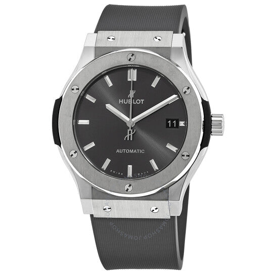علبة تيتانيوم رمادية اللون مع سوار مطاطي رمادي. إطار ثابت من التيتانيوم الرمادي. ميناء رمادي اللون مع عقارب فضية اللون وعلامات ساعات. نوع الميناء: تناظري. عرض التاريخ عند موضع الساعة 3. حركة هوبلو أوتوماتيكية HUB1112، مبنية على سيليتا SW300-1، تحتوي على 25 جوهرة، مكونة من 63 جزءًا، تنبض بمعدل 28800 ذبذبة في الساعة، ولديها احتياطي طاقة لمدة 42 ساعة تقريبًا. زجاج ياقوتي مقاوم للخدش. شكل العلبة دائري، مقاسها 45 مم. مشبك قابل للطي بزر ضغط. مقاومة للماء حتى عمق 50 مترًا / 165 قدمًا. الوظائف: التاريخ، الساعة، الدقيقة، الثانية. معلومات إضافية: العلبة الأصلية، دليل الاستخدام (ملحقات كاملة). سلسلة كلاسيك فيوجن. طراز ساعة فاخرة. ملصق الساعة: صناعة سويسرية. ساعة هوبلو كلاسيك فيوجن أوتوماتيكية للرجال بمينا رمادي، 511.NX.7071.RX.