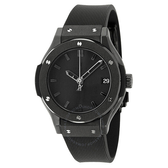 علبة سيراميك سوداء (مطلية بالساتان) مع سوار مطاطي أسود. إطار ثابت من السيراميك الأسود. ميناء أسود بعقارب وعلامات ساعات سوداء. نوع الميناء: تناظري. عرض التاريخ عند موضع الساعة 3. آلية حركة كوارتز. زجاج ياقوتي مقاوم للخدش. تاج لولبي. غطاء خلفي صلب. قطر العلبة: 33 مم. شكلها دائري. عرض السوار: 20.3 مم. طول السوار: 8 بوصات. مشبك تانغ. مقاومة للماء حتى عمق 100 متر / 330 قدمًا. الوظائف: التاريخ، الساعة، الدقائق، الثواني. تصميم ساعة فاخرة. علامة الساعة: صناعة سويسرية. ساعة هوبلو كلاسيك فيوجن نسائية بمينا أسود وسيراميك أسود، 581.CM.1110.RX.