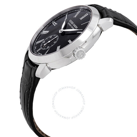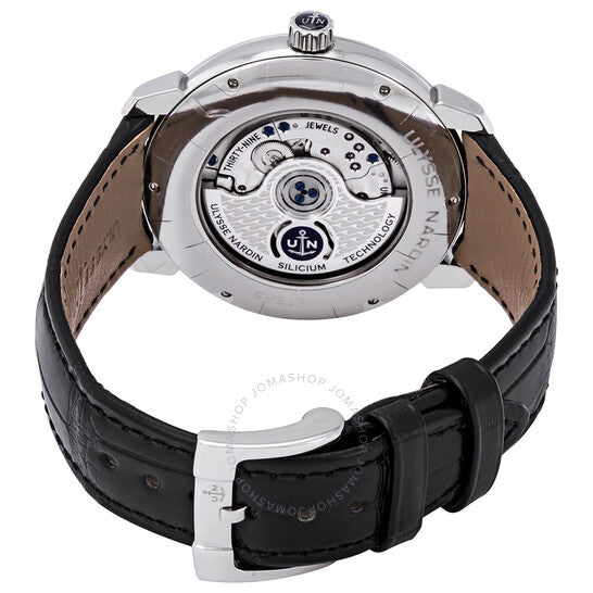 علبة من الفولاذ المقاوم للصدأ مع سوار أسود من جلد التمساح. إطار ثابت من الفولاذ المقاوم للصدأ. ميناء أسود مطلي بالمينا مع عقارب فضية اللون على شكل ورقة شجر وعلامات ساعات رومانية. علامات دقائق حول الحافة الخارجية. نوع الميناء: تناظري. عرض التاريخ عند موضع الساعة السادسة. ميناء فرعي واحد يعرض الثواني الصغيرة. حركة أوتوماتيكية من أوليس ناردين، عيار UN-320، تحتوي على 39 جوهرة، تنبض بمعدل 21600 ذبذبة في الساعة، ولديها احتياطي طاقة لمدة 48 ساعة تقريبًا. زجاج من الياقوت المقاوم للخدش. تاج قابل للسحب/الدفع. غطاء خلفي شفاف. شكل دائري. حجم العلبة: 40 مم. سمك العلبة: 10 مم. عرض السوار: 20 مم. مشبك تانغ. مقاومة للماء حتى عمق 30 مترًا / 100 قدم. الوظائف: التاريخ، الساعة، الدقيقة، الثانية. سلسلة كلاسيكو مانوفاكتشر. طراز ساعة فاخرة. ملصق الساعة: صناعة سويسرية. ساعة أوليس ناردين كلاسيكو مانوفاكتور الأوتوماتيكية للرجال 3203-136-2/E2.
